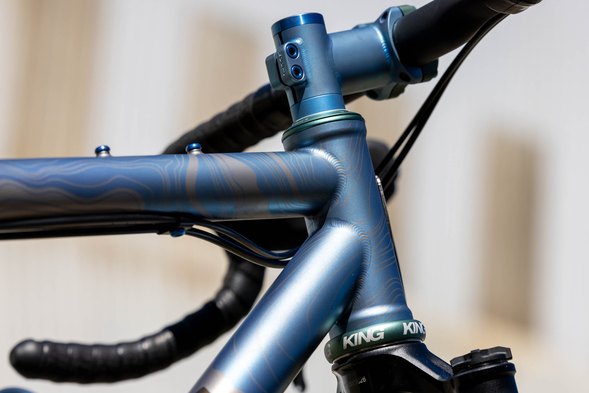 The yet-to-be-released Moots Adventure Bike is planned to be available this fall as part of a limited release. It’s a titanium drop-bar mountain bike with clearance for 29 x 2.4″ tires, external cable routing, and loads of mounting points, including rack mounts, top tube bosses, and mounts covering the main triangle. It features a funky new topographic finish and will be available in four stock sizes. According to the folks at Moots, it should be available as a complete build for under $10,000 USD. It far from cheap, but Moots has over four decades of framebuilding experience under their belts, and each frame is handmade with incredible attention to detail in their Colorado shop. We’ll be sure to share more when orders open.
