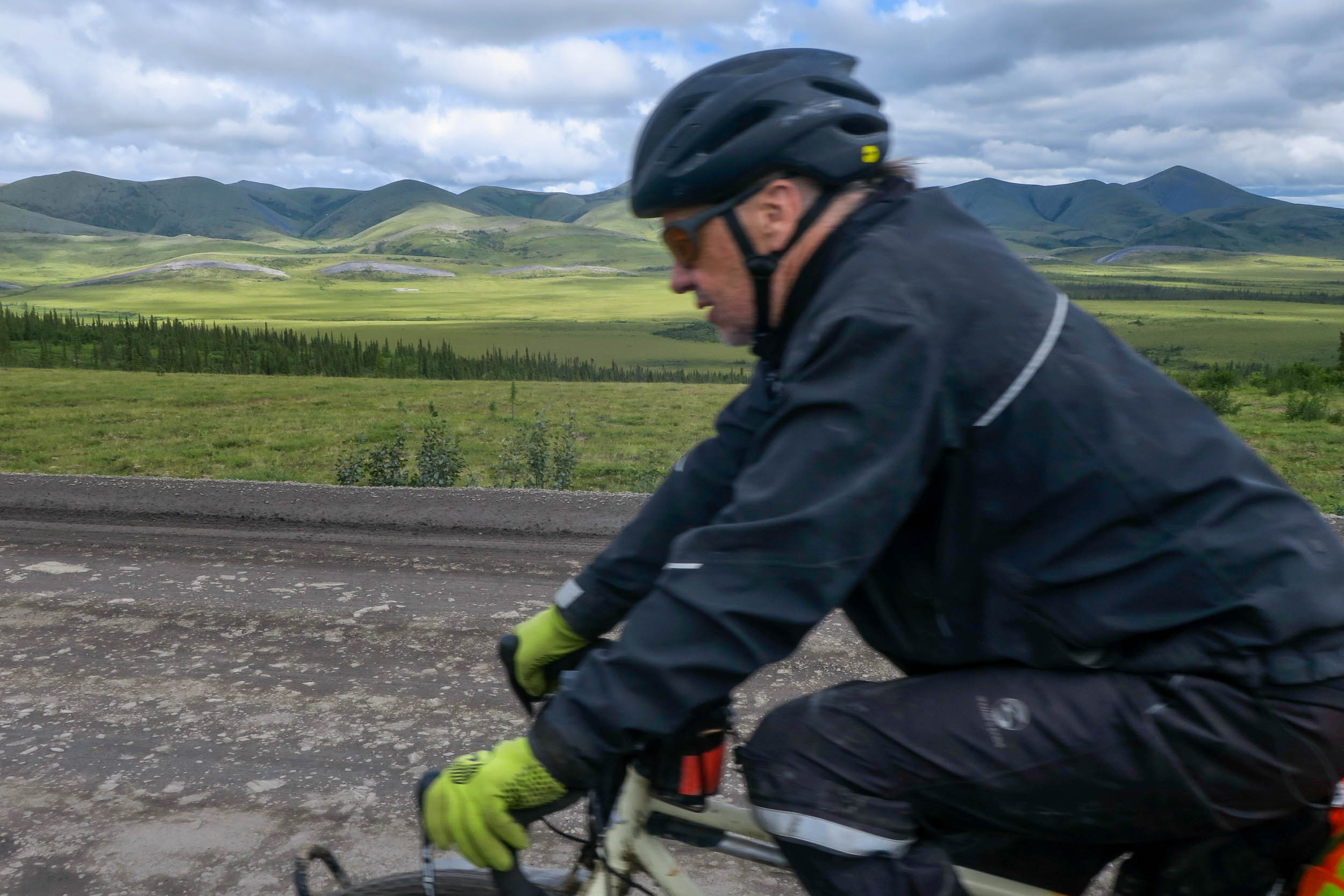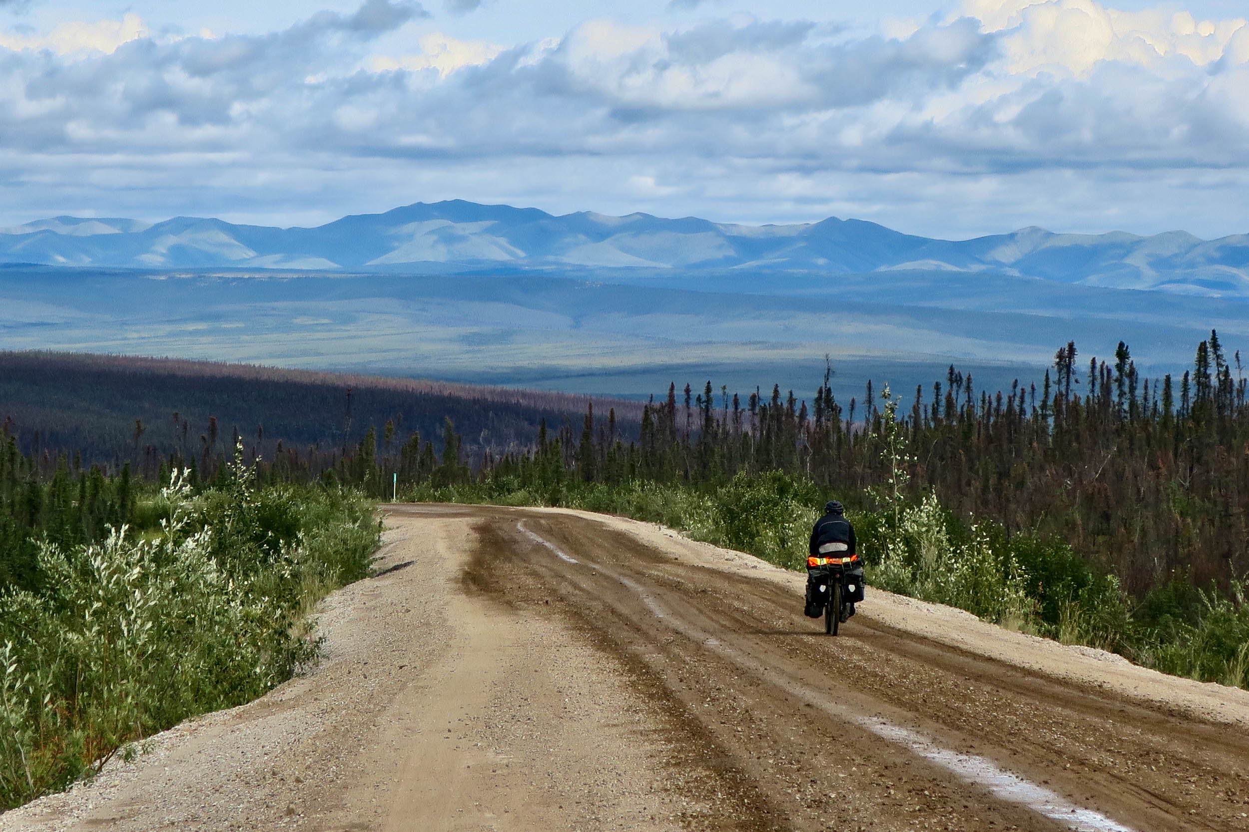 We had passed through the notorious “Hurricane Alley” segment into the Northwest Territories. The wind in the area can reach hurricane speeds, and we were seriously lucky to mostly have it at our backs. After a ripping descent with the Richardson Mountains in view, a vehicle slowed down beside us.