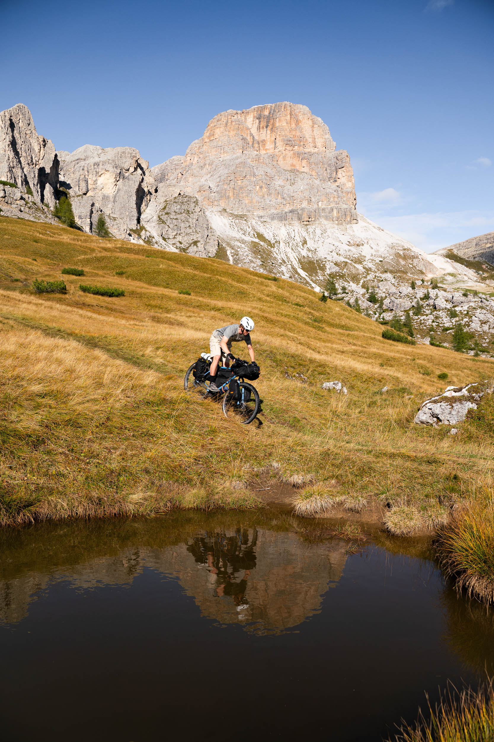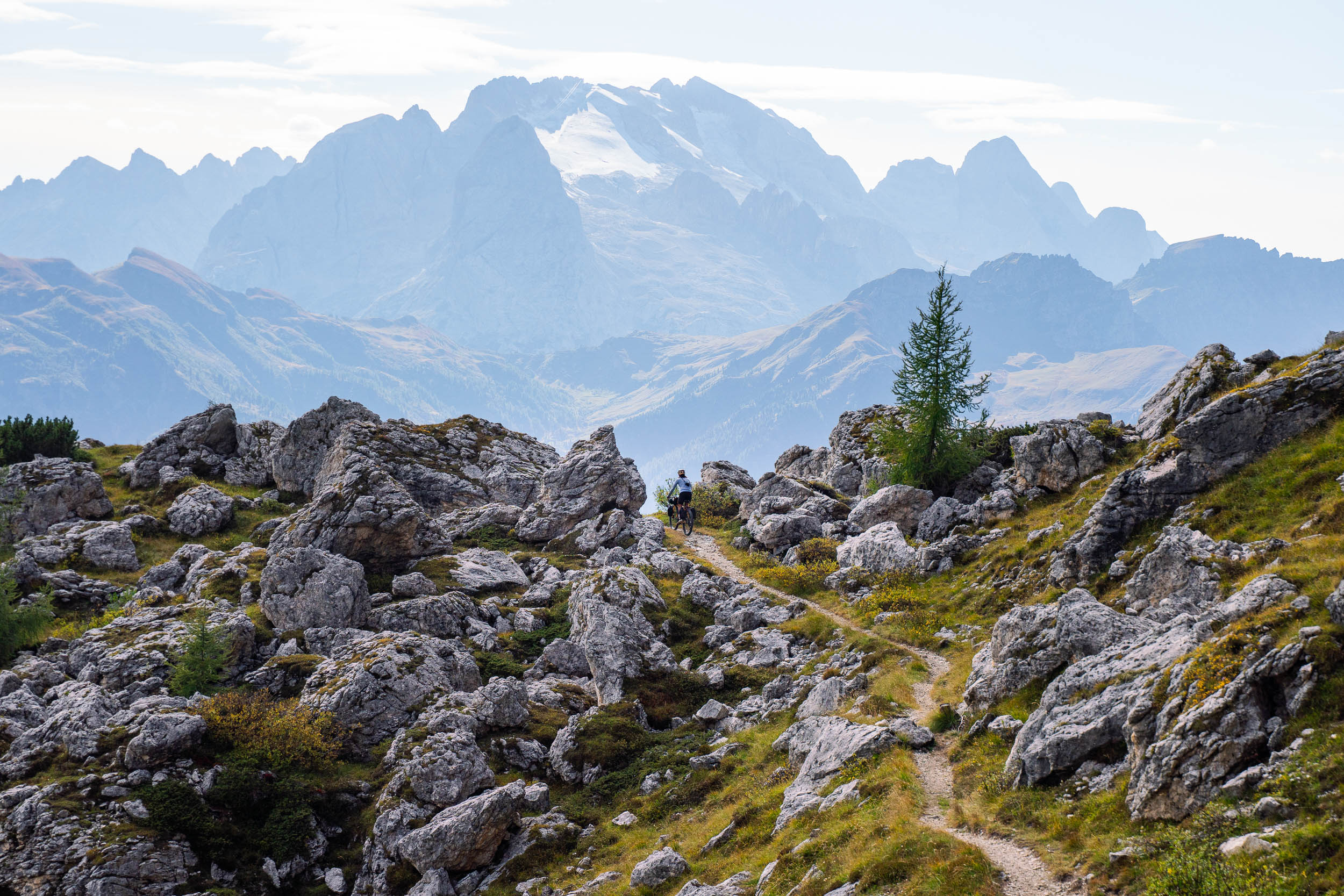 We wanted to finish our yearlong journey somewhere special, and the Dolomites delivered an experience that will remain in our memory banks for many moons to come. The views were jaw-dropping, and we were awe-stricken by the sheer beauty of this corner of the Alps. The majestic limestone peaks, jagged ridgelines, and lush alpine meadows were incredible to ride through. We enjoyed strudel at the top of passes, watched the stunning sunrises and sunsets catch the tops of the mountains, and listened to stags rutting as we tried to sleep, hoping they wouldn’t set their sights on our little tent. The riding was super steep and testing at times, but the landscapes we saw and the singletrack we rode down were a dream. It was all totally worth it.