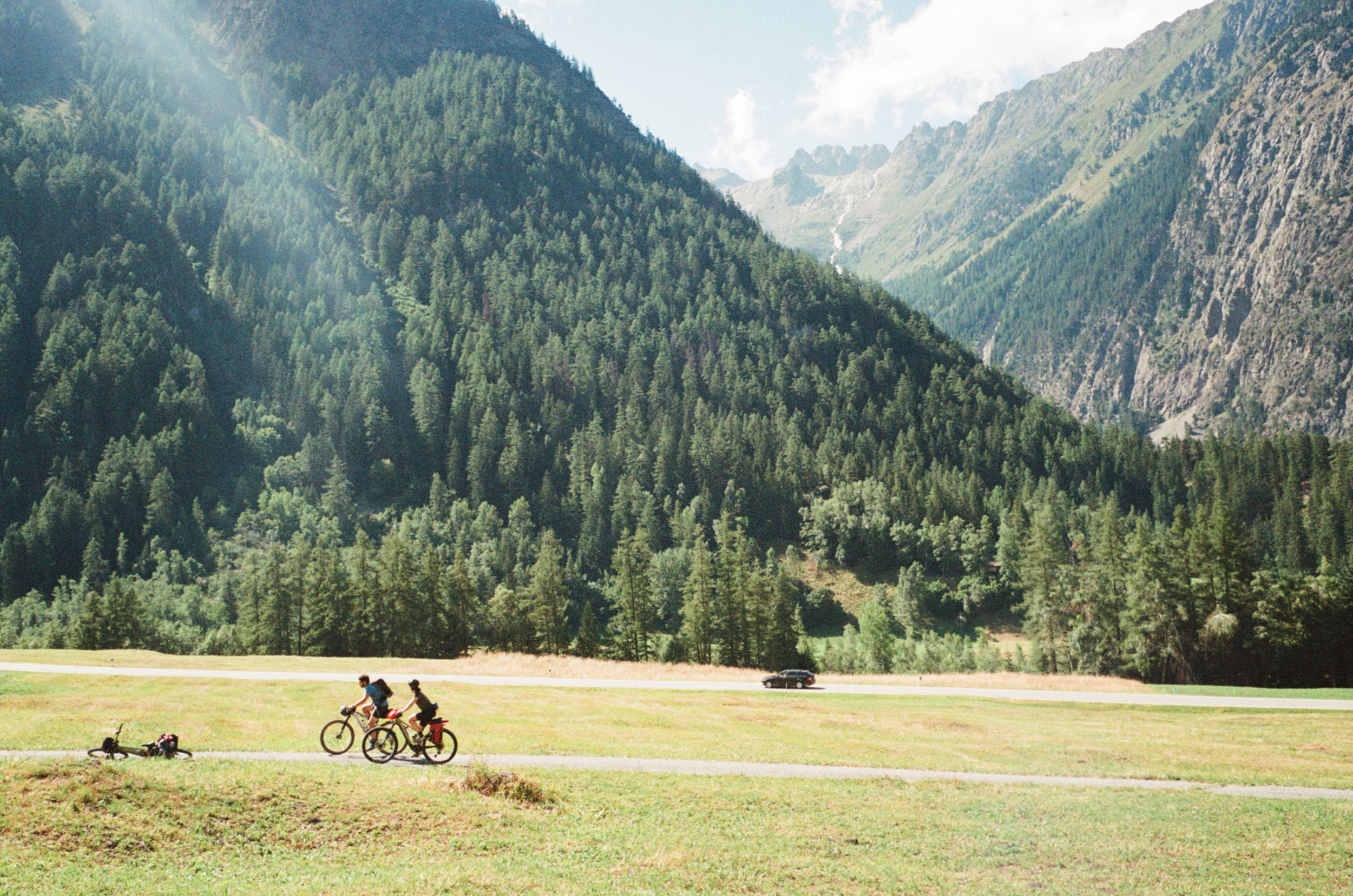 At the end of day three, we pass the Mont Blanc Tunnel sign. The only tunnel through the heart of the tour, and our only way back to Chamonix in case we don’t want to continue on the route. Nick cycles beside me and says, “You’ve found the rhythm by now, huh?” And indeed, when I think about it, it’s day three, and I finally feel confident that I am going to finish this loop, one way or another. There will be more hike-a-bike sections and more sweating and swearing, but I’m committed.