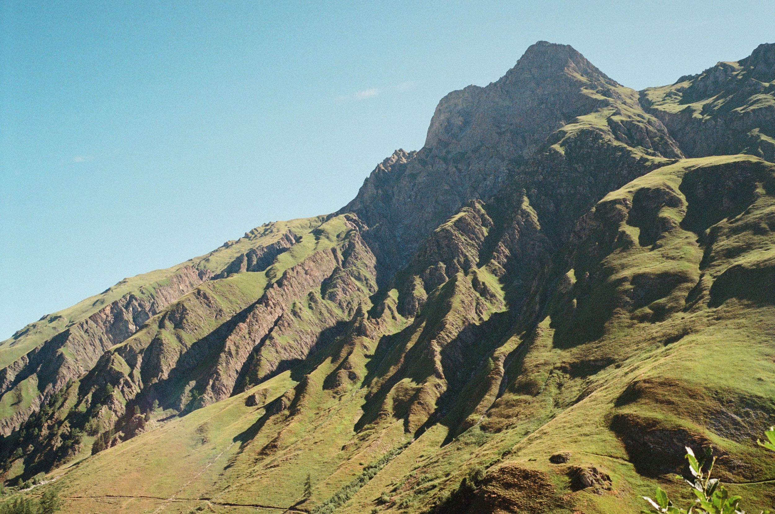 My moment of confidence and acceptance turns out to be short. The downhill isn’t rideable for the most part, and I feel like a fool dragging this heavy bike down in between hikers. After lunch, we decide to skip a short section to cycle a few kilometers on the road. Luckily, we end up on a downhill that is actually rideable. When Mont Blanc appears beside us, I begin to enjoy myself again.