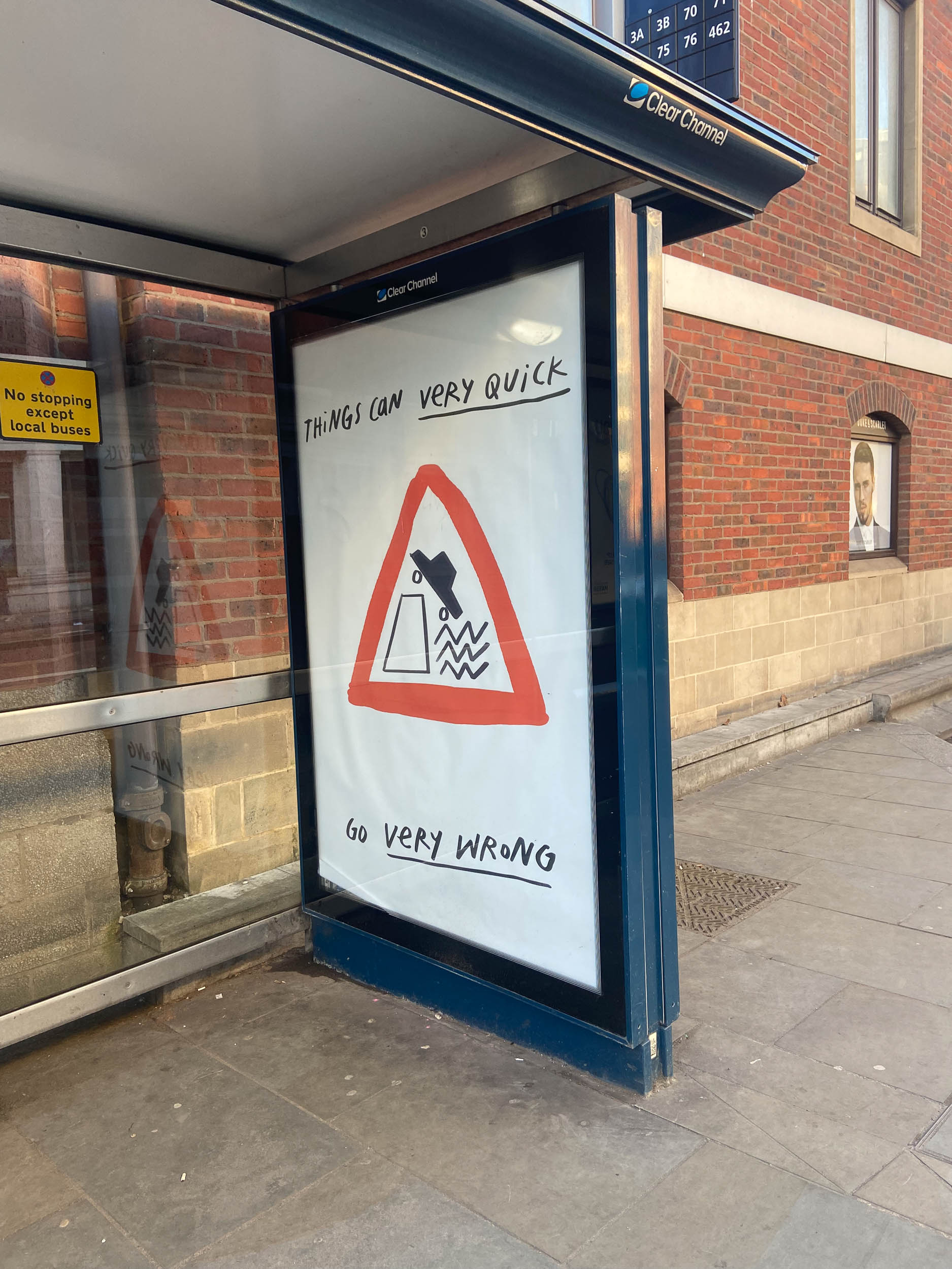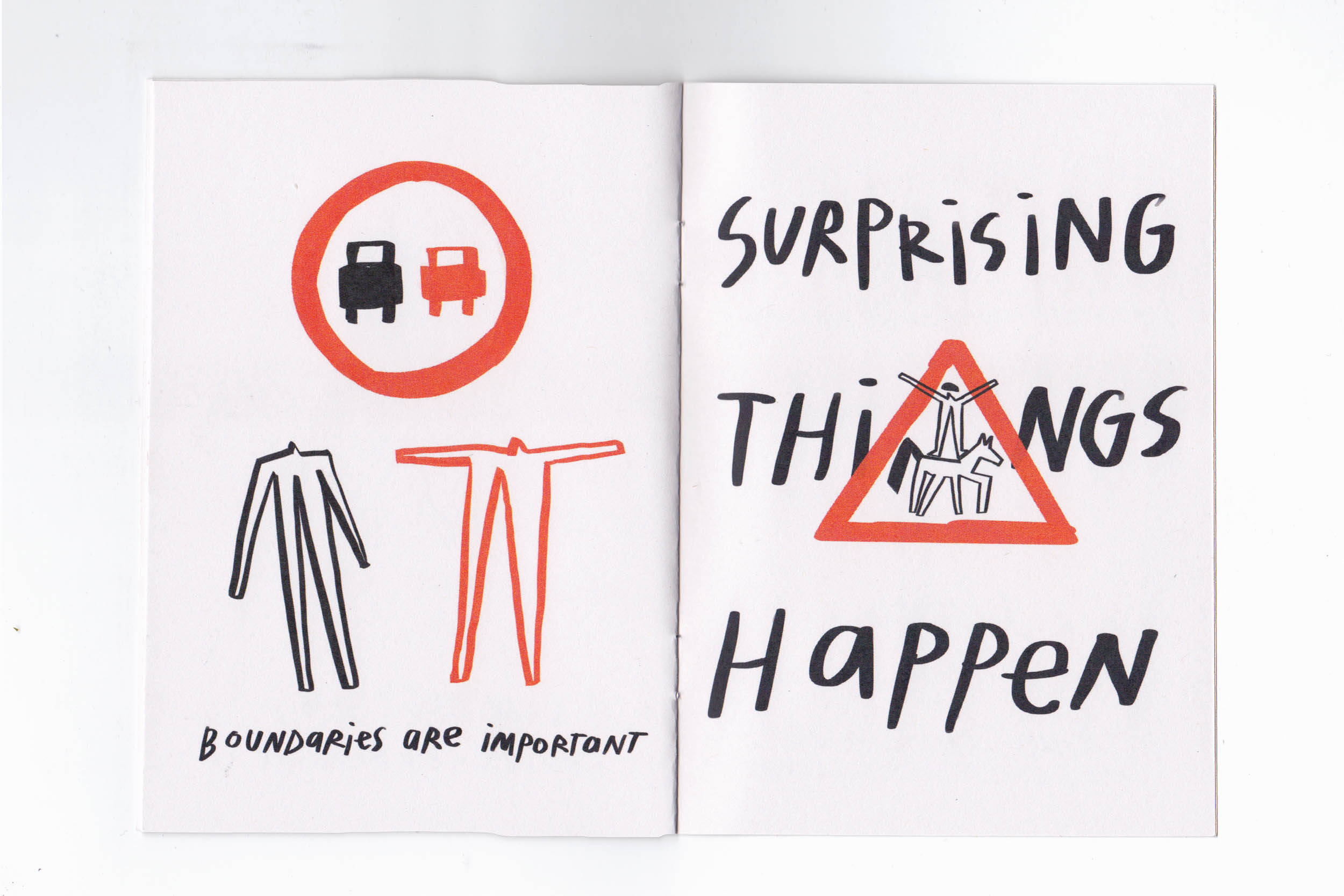 My featured illustration is from What Road Signs Teach Us, a zine I made when I was feeling very lost, scared, and in love. There was something comforting about the simplicity of the signs and connecting them to what I was experiencing. I also made them into huge bus stop prints, and they were installed across Bristol as little subvertising ad breaks.