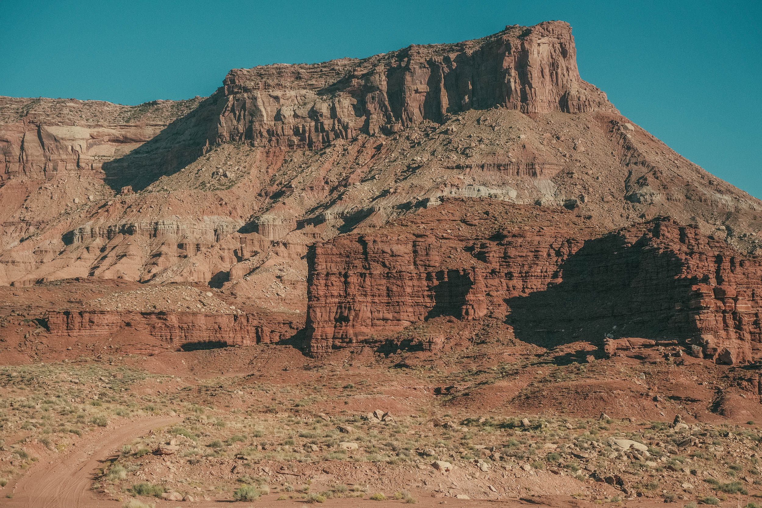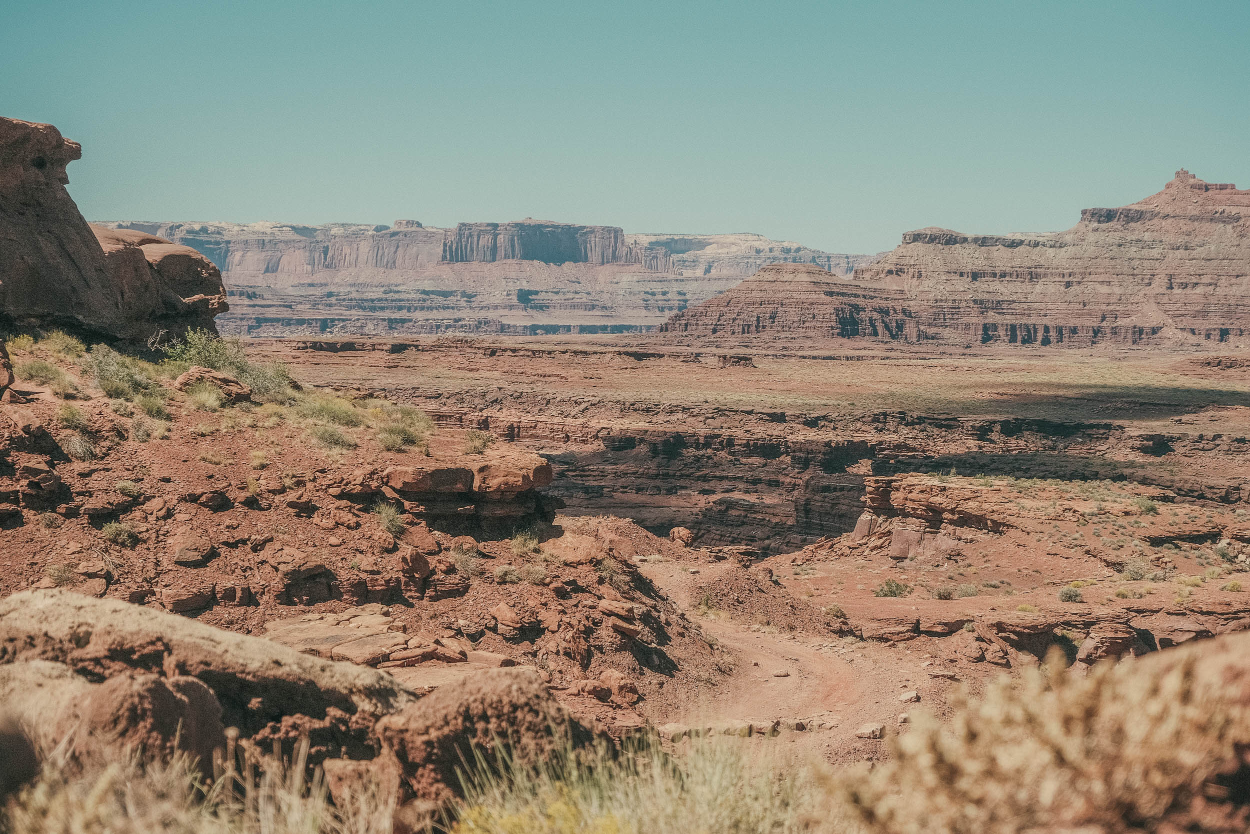 The first section, just after Moab, is light and fun, following a mellow dirt road along the Colorado River. Some petroglyphs can be spotted around. It gradually became increasingly technical and hot. There are many boulders to jump and carry the bike over, plus sand, loose rock, and intense descents. Some roads are just a giant rock. Just about making it to Hurrah Pass, I come across two bikepackers who were dropped at Lockhart Basin and riding back to Moab on an overnighter. They fill me in on what’s about to come, and while I appreciate it, I’m reminded that it’s sometimes better to just experience things for yourself.