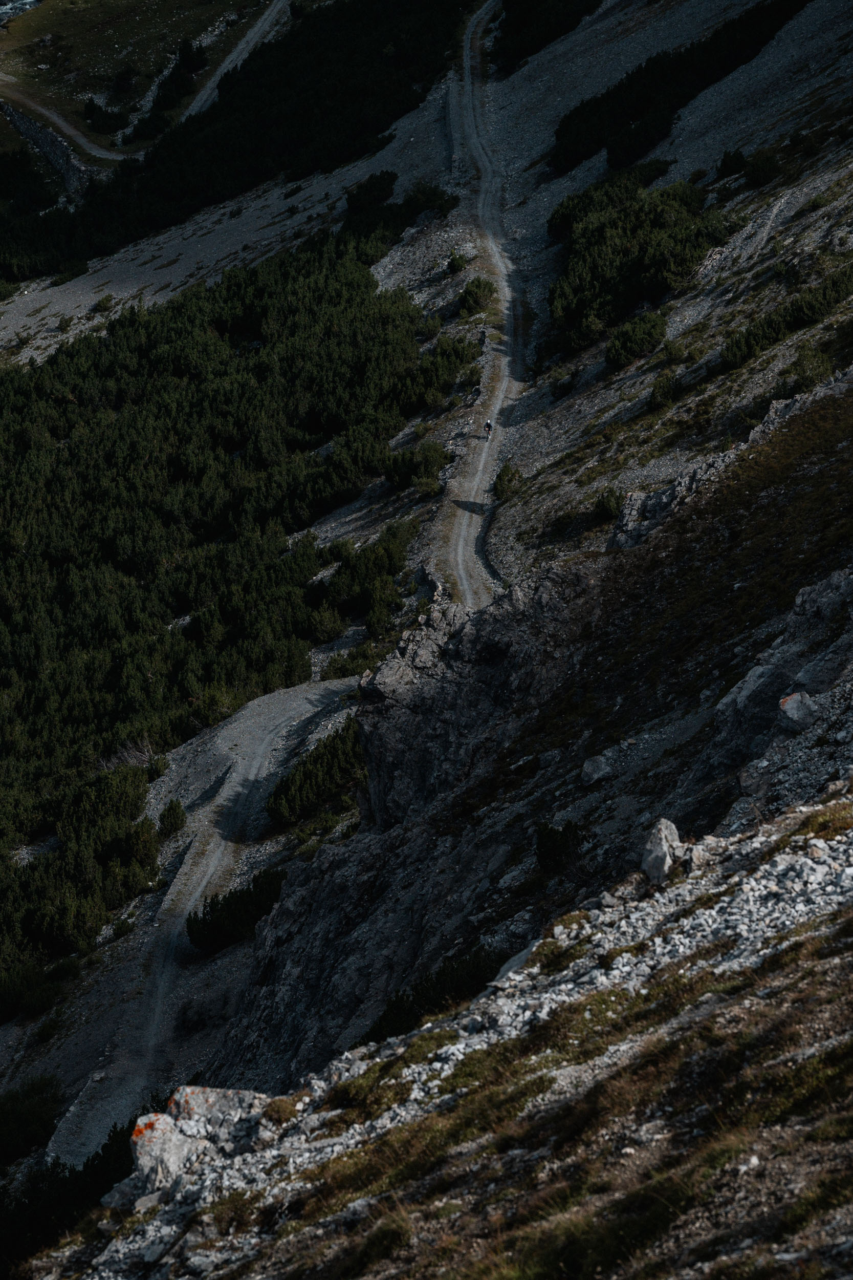 And then it happened. After bikepacking through the mountains for four days, I felt utterly lost—in the most positive way. Being in the middle of the clouds at around 2,800 meters, I found myself in a white bubble of just 20 meters wide, where anything beyond didn’t seem to exist anymore. Everything shifted into a surreal experience. As I approached the top, I heard boulders rumbling in a deep, growling sound, unsure of where it was coming from. My mind was spinning; I couldn’t make sense of it. It sounded like the mountain was slowly trying to move toward me and crumbling with every step.