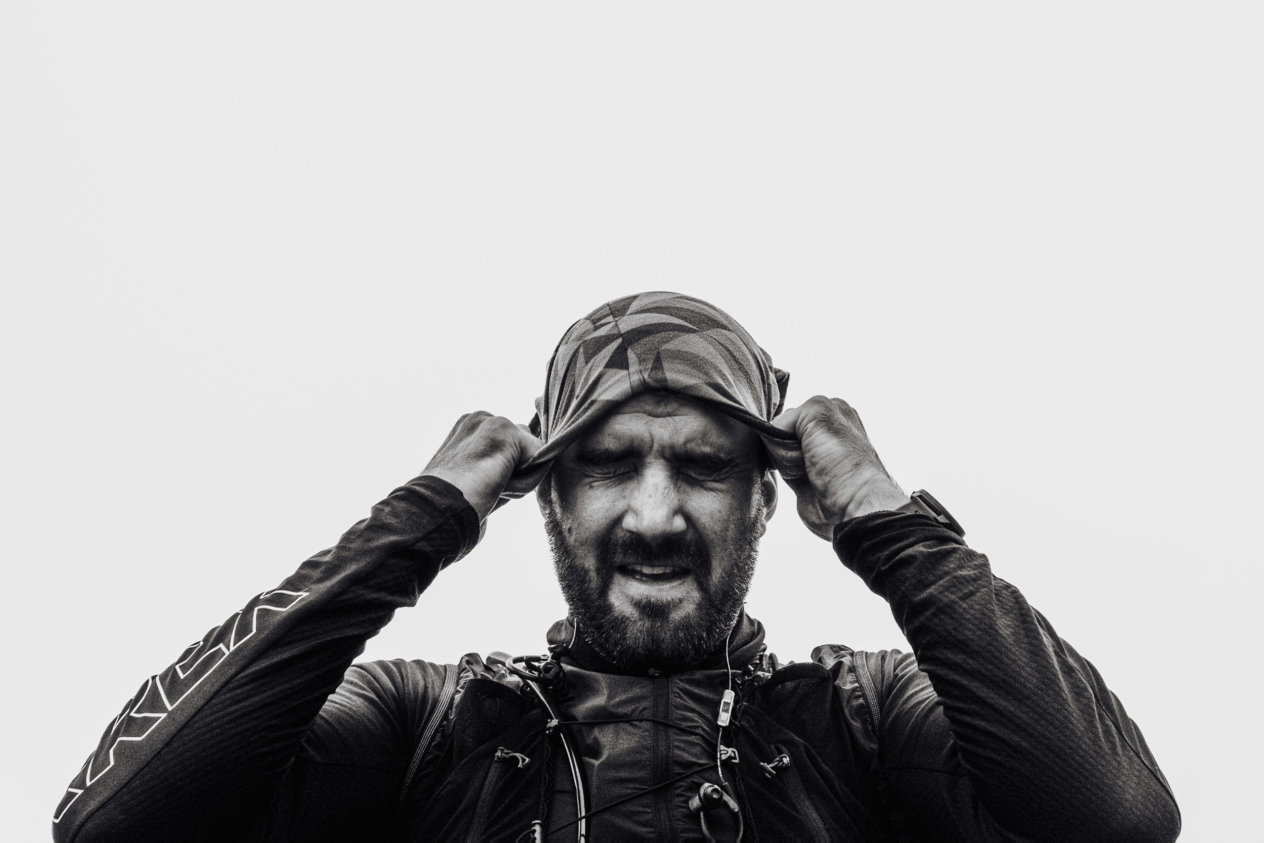 I continued and went up to the next checkpoint. That day, we were told to expect a strong rainy day, so I tried to get over the next mountain as fast as possible. When I got near the top of the climb, I got swallowed by the clouds. At first, it was possible to see down into the valley, but the further I went, the more I stepped into white fog.