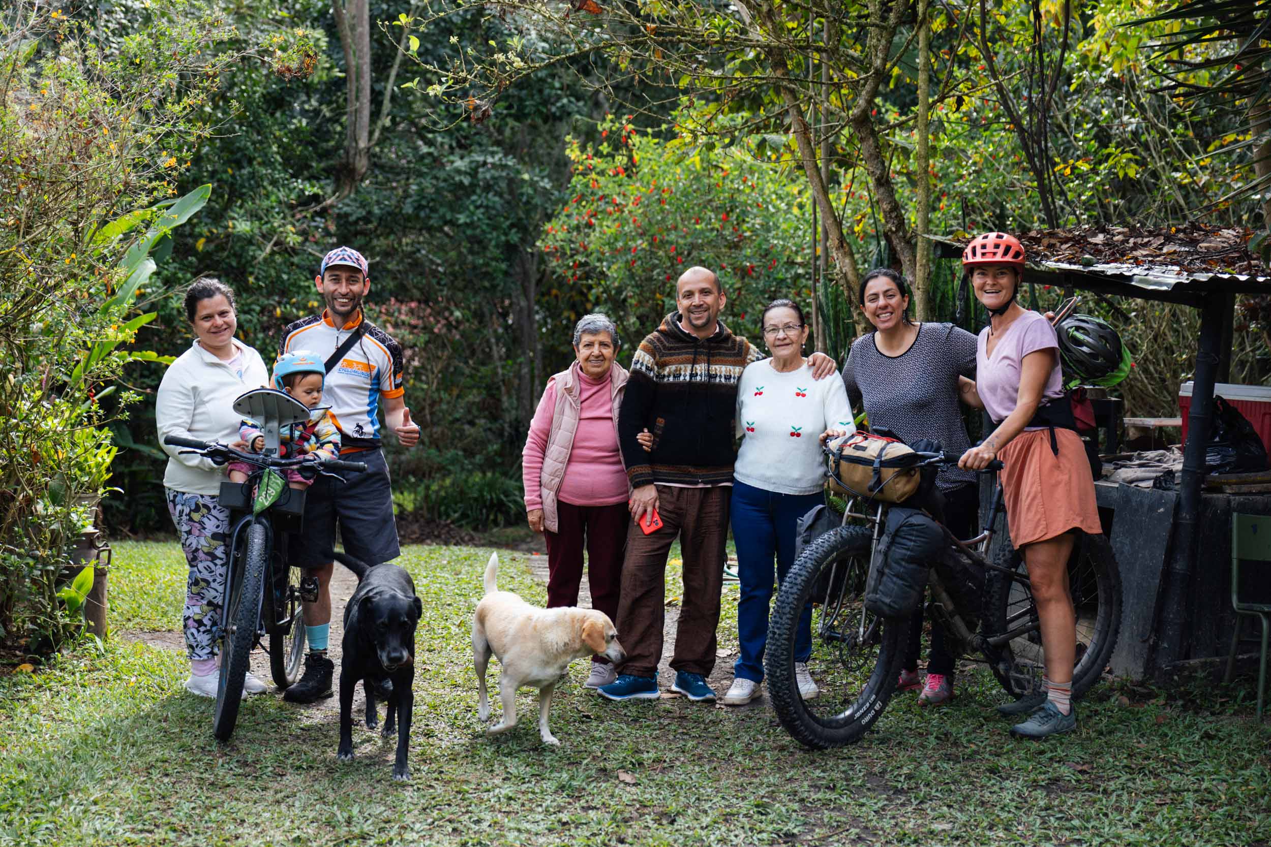 We stop for lunch in colourful El Calvario, a village where horses are parked up next to old trucks, and whose main street has a neat blue trim and is so steep that our calves pop as we push our bikes up it. A restaurant rustles us up the plat du jour, or comida corriente as it’s called in Colombia. Today, it’s a plate of barbecued pork, rice, patacones – smashed and fried plantains – and a tasty homemade salsa, washed down with a glass of lulo juice – made from the green orbs that we see growing on the edges of town. We chat to the three generations of women there, who quiz us about our journey. “You’re welcome back any time,” they say as we leave, after we gather outside for the most joyful of group photos.