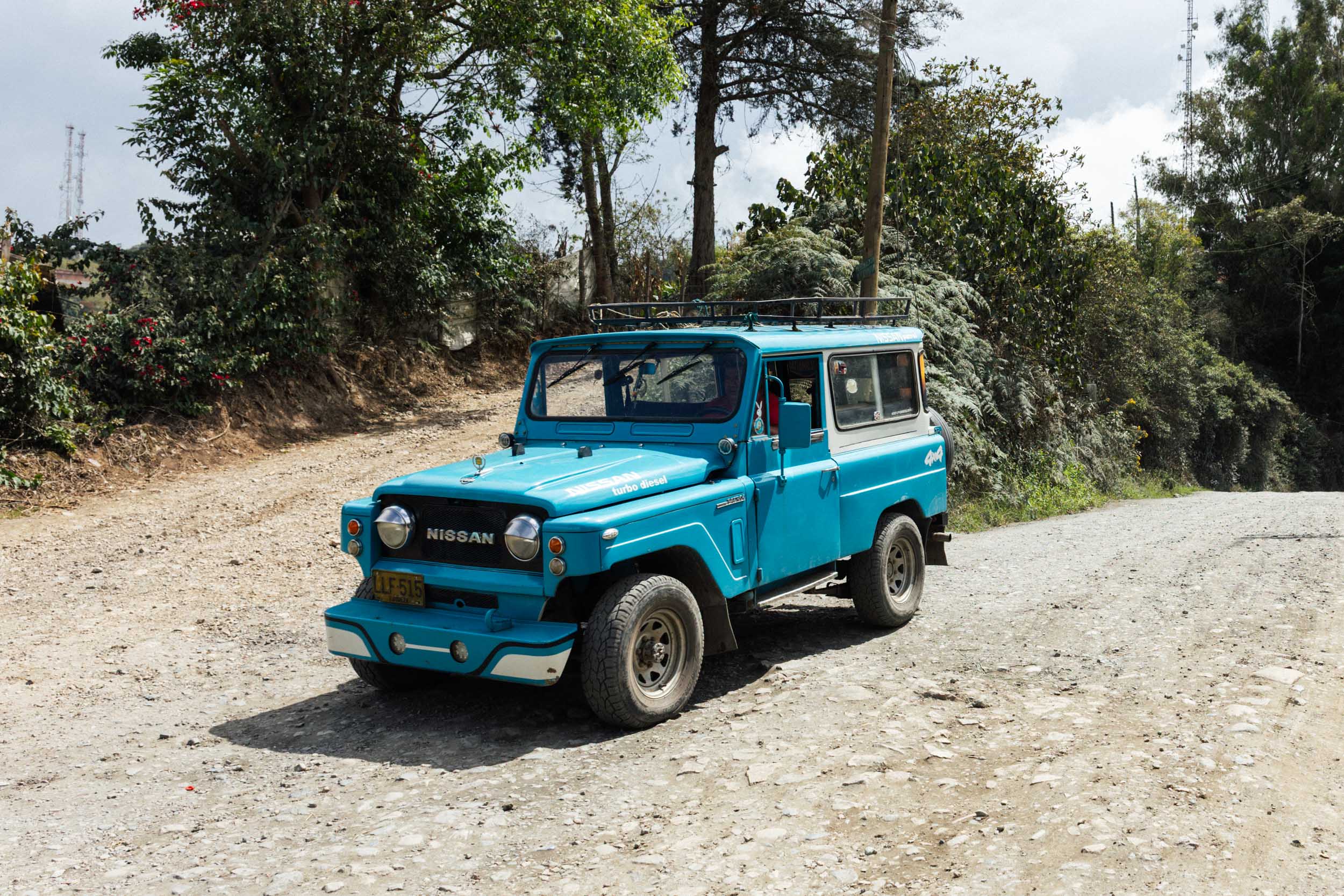 Onwards we ride, through Potrero Grande with its massive glass shrine, big enough to encase a perfectly white and beautifully restored Nissan Patrol. The cafe there is known for its fresh yoghurt, produced at a neighbouring farm, so we down a litre, sample some Colombian eggnog – sabajona – and feast on corn cakes wrapped in banana leaves. The table next door to us is singing along to what I presume are Colombian classics and knocking back cervezas with gusto. Beer and music are the theme of the day, and in one village after another, we see dozens of Águilas lined up on the hoods of cars, trunks open for maximum volume. Tailgate Sundays! Then we enjoy one especially sweet Daihatsu encounter with a beaming family who stop abruptly in the middle of the road to chat, their grandma waving enthusiastically from her little bench seat in the back.
