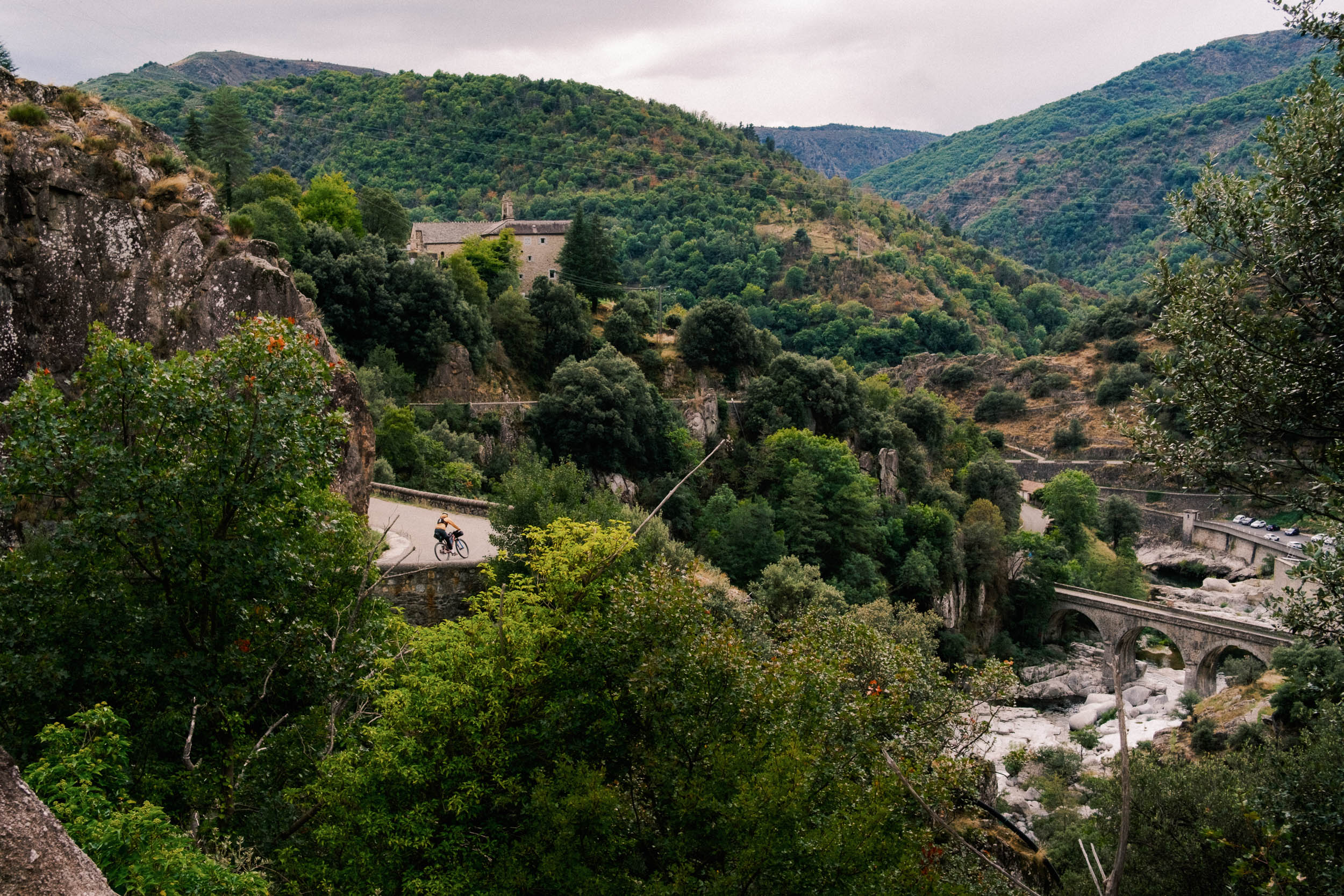 Thankfully, the day before we left, Florian, a friend from Brussels, gave us a call and told us he’d been planning a ride in the Drôme region, but the weather looked so bad that they were looking elsewhere. He suggested that the weather in the area around the Ardèche–Cévennes Divide looked the “least bad,” and said we might cross paths with them out there.