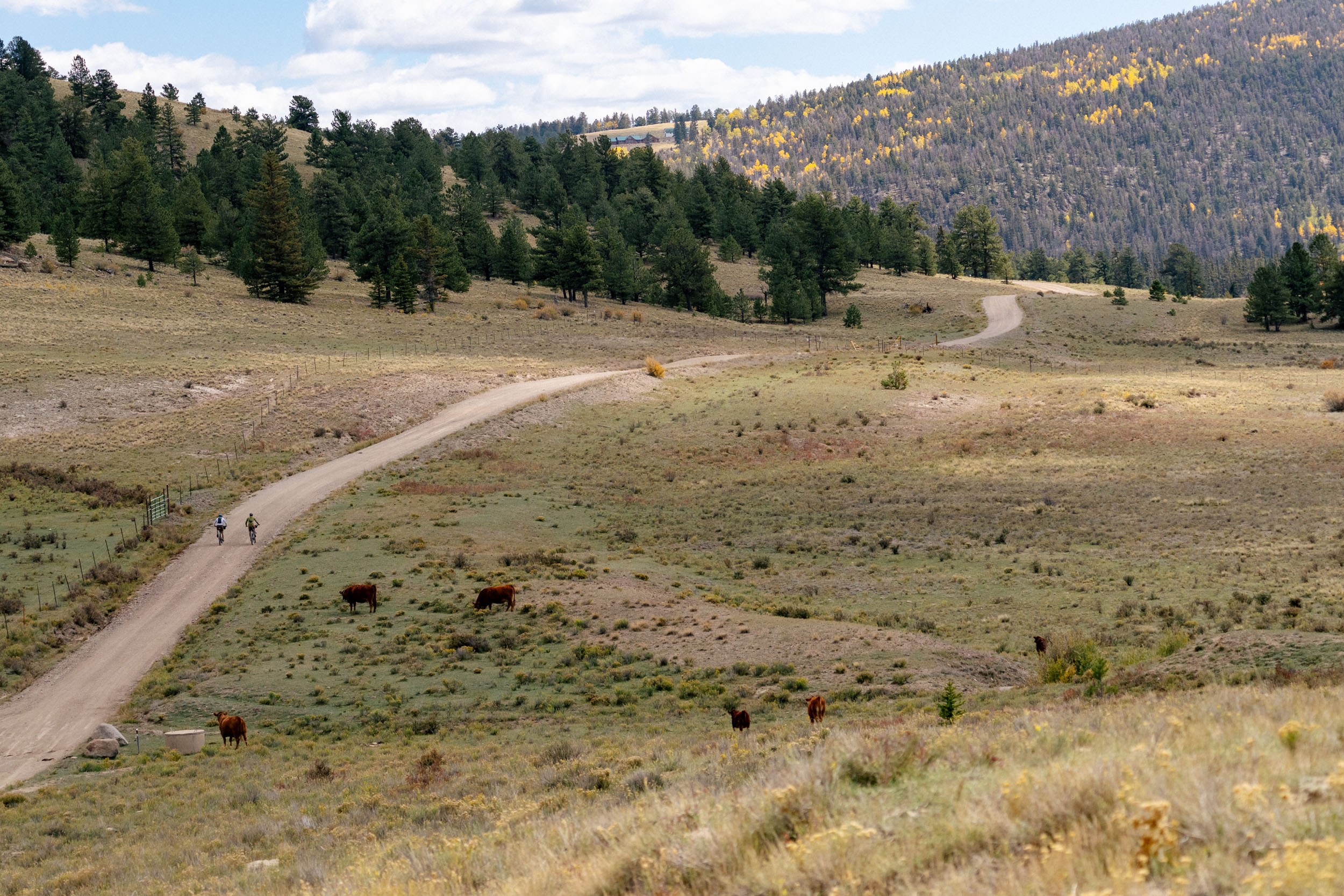 From here, a fast and winding descent drops you into a wide-open area known as Chubb Park, which is often filled with livestock. You’ll pedal alongside an aqueduct for a few miles, and it is an easy, scenic stretch with unique views. As you begin climbing again toward Trout Creek Pass, you’ll slowly start to hear traffic from Highway 285, a major corridor between Denver and this region. After crossing the highway, you’ll roll into what feels like a strange neighborhood, because it is exactly that.