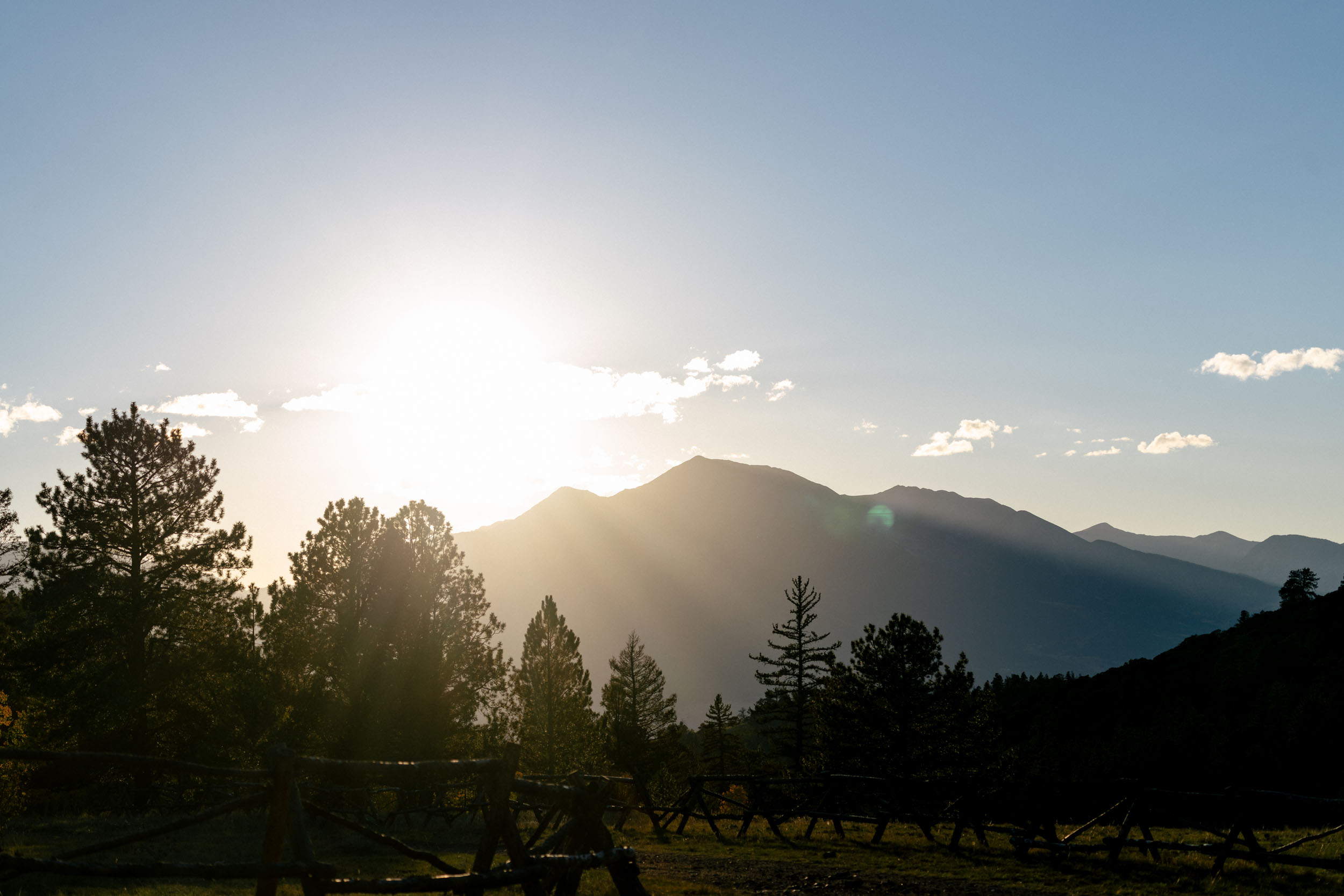 As you make your way up through juniper and eventually ponderosa pines, the landscape opens up quickly. The views extend to massive 14,000-foot peaks that feel close enough to touch yet are still miles away across the Arkansas River Valley. After a few more ups and downs, you reach the top of Seven Mile Creek Road, sitting at around 9,800 feet. You’ll feel the elevation, but you’ll also notice the transition into a different zone, with more evergreens and aspens.