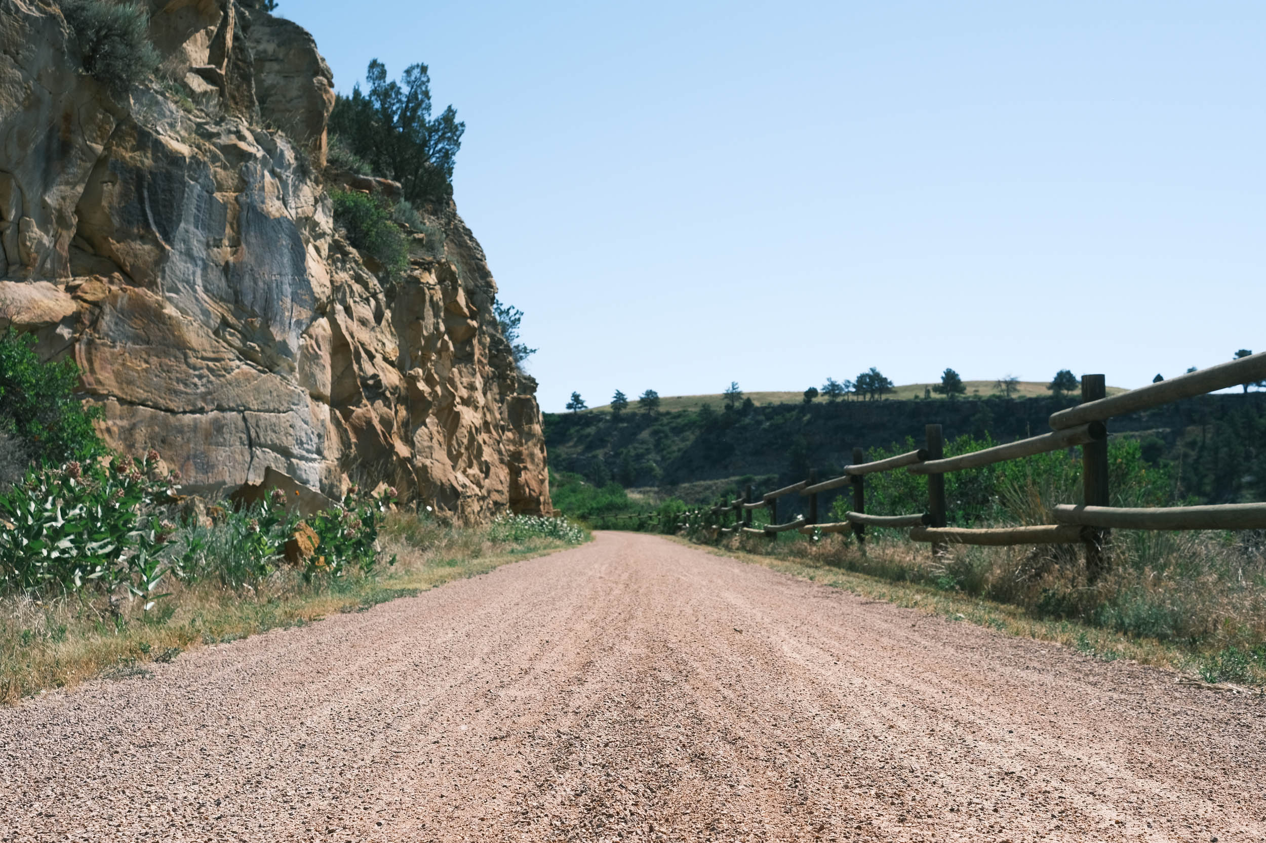 At the southern terminus, the trail drops out of the Black Hills into the Great Plains, where the route continues east.