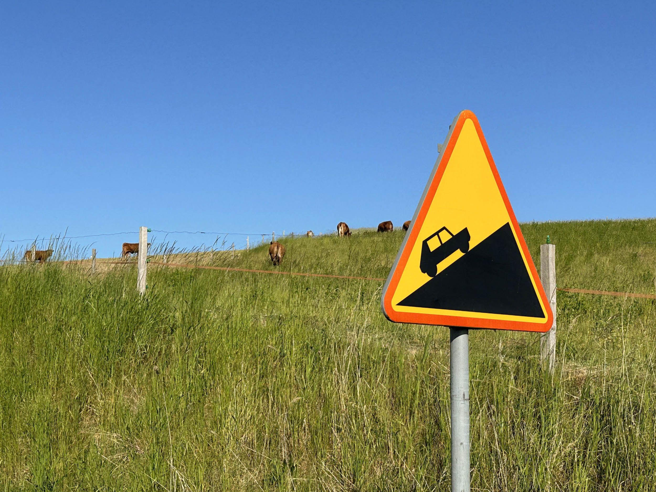 The route rolls through many hills (which provide killer views) with a few steeper climbs, but nothing close to real mountains. The main challenge is the distance. If you prefer longer breaks, come in summer when the days are long. You never need to get off the bike and push.