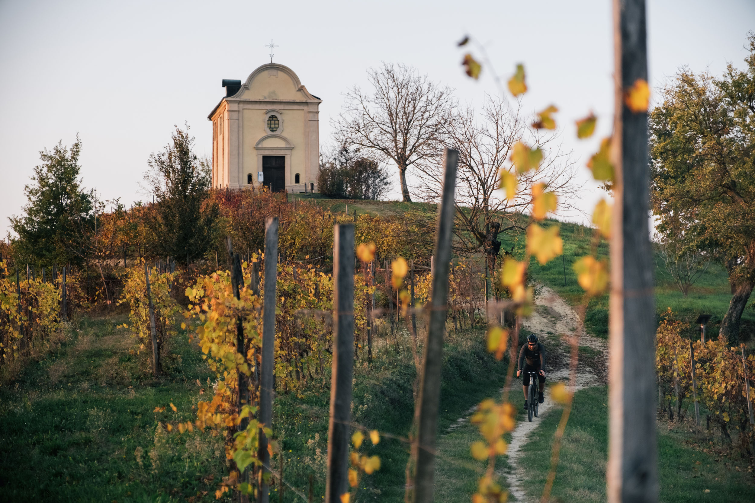 These hills are a special place because you can experience them throughout the year, in all the seasons. Most of the route includes dirt roads and singletrack sections, especially in the parks, the woods, and on the ups and downs of the vineyards, all surrounded by landscapes and colors that change according to the time of year.